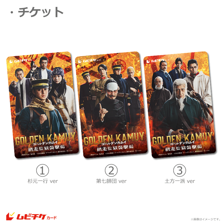 ★ムビチケカードのビジュアルは《①杉元一行 ver/②第七師団 ver/③土方一派 ver》からお選びいただけます。