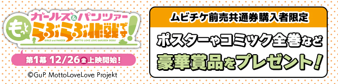 ※本券は『ガールズ&パンツァー もっとらぶらぶ作戦です!』の「第1幕」「第2幕」「第3幕」「第4幕」から1作品をご鑑賞いただけます。