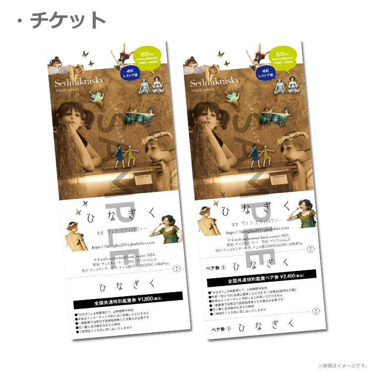 ※一般券1枚につき【『ひなぎく』60周年記念ポストカード:A】が1枚、一般ペア券1枚につき【『ひなぎく』60周年記念ポストカード:A・B】が1セット付きます。
