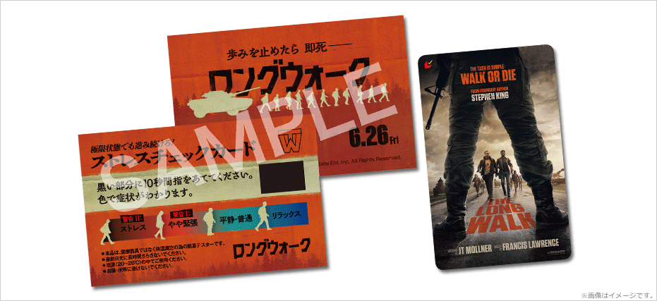 劇場、当サイトにて【歩みを止めるな!特製ストレスチェックカード】付『ロングウォーク』ムビチケカードを4月3日より販売します!!