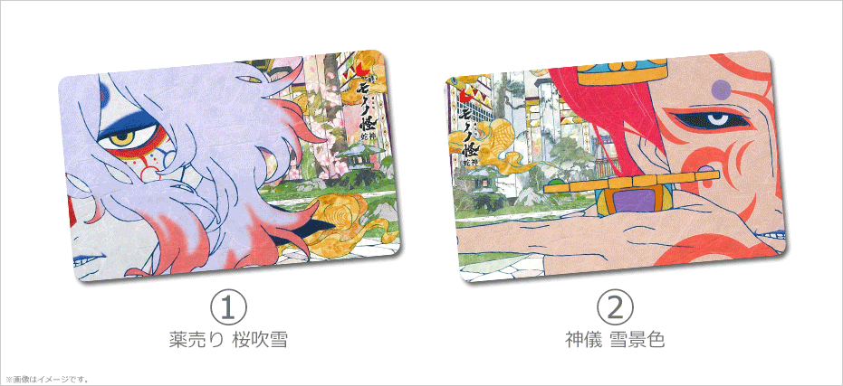 - ムビチケカードのビジュアルは《①薬売り 桜吹雪/②神儀 雪景色》からお選びいただけます。