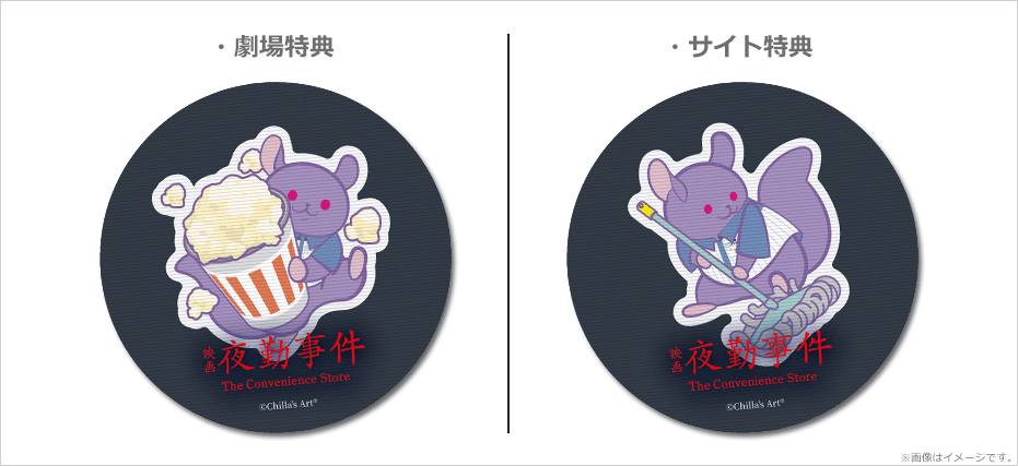 ※【Chilla’s Art×映画『夜勤事件』コラボ オリジナルステッカー】の絵柄は劇場特典とサイト特典で異なります。